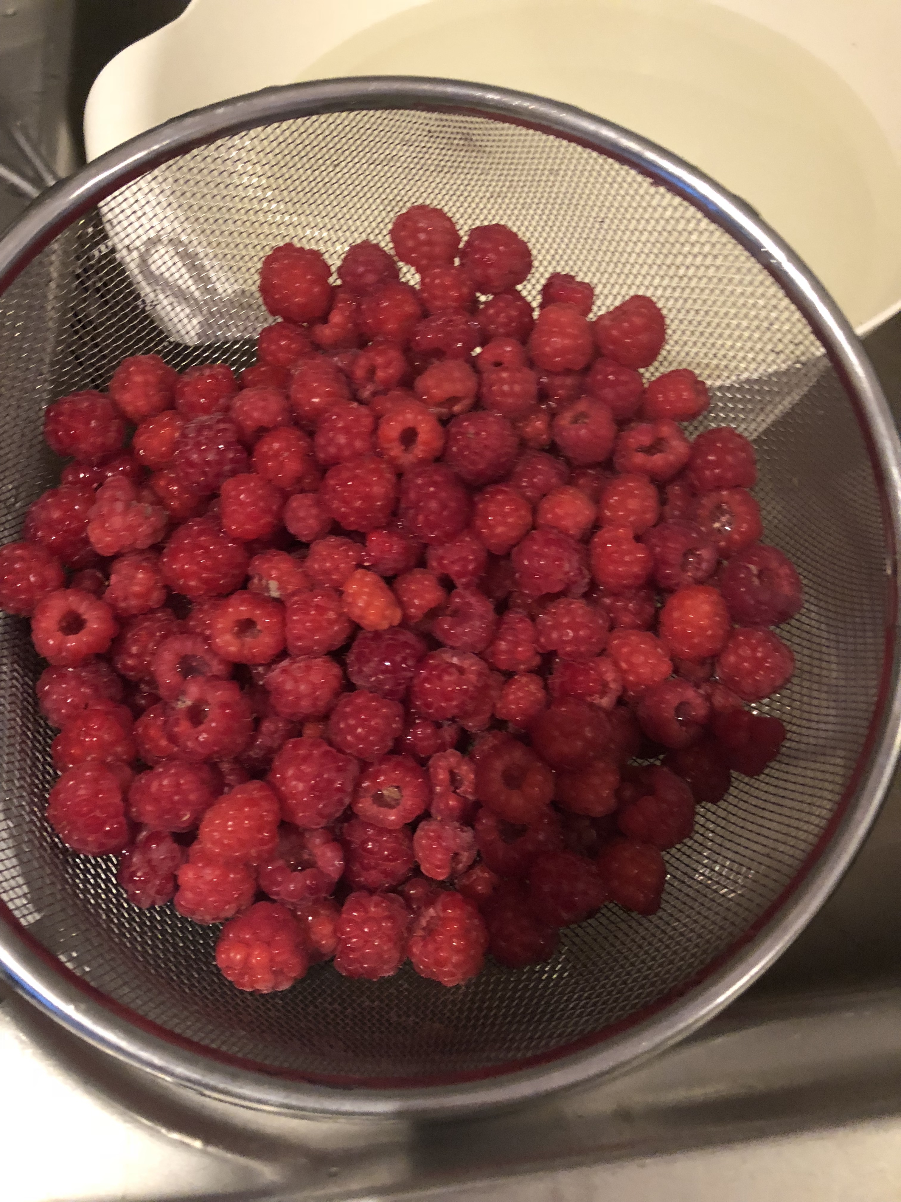 Raspberries in a strainer to be washed